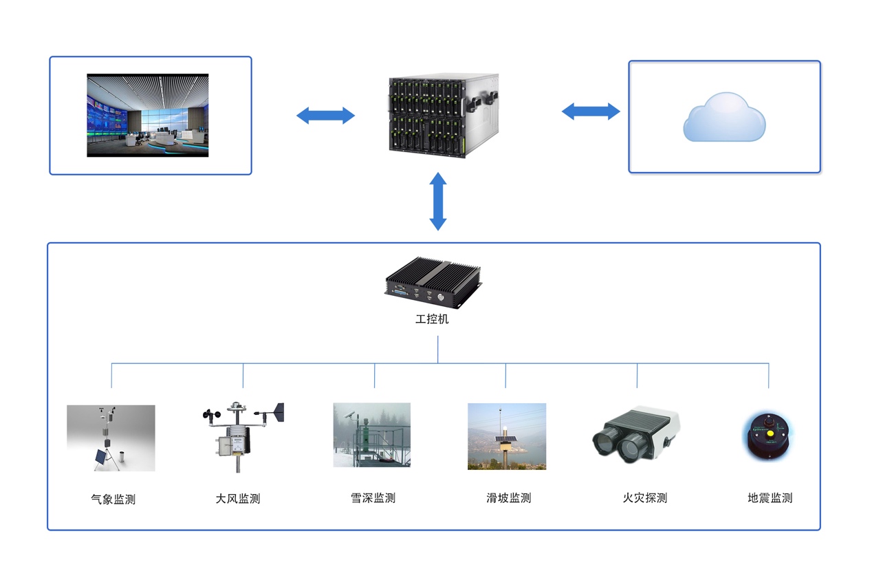 防災(zāi)減災(zāi)綜合監(jiān)測(cè)預(yù)警系統(tǒng)現(xiàn)場(chǎng)級(jí)處理單元由核心工控機(jī)和外圍傳感器設(shè)備組成,部署在水電站、核電站、機(jī)場(chǎng)、海港等關(guān)鍵場(chǎng)所,主要用于防災(zāi)數(shù)據(jù)監(jiān)測(cè)、數(shù)據(jù)分析和聯(lián)動(dòng)控制?,F(xiàn)場(chǎng)級(jí)處理單元通過(guò)專用網(wǎng)絡(luò)與監(jiān)控中心進(jìn)行通信,實(shí)現(xiàn)自然災(zāi)害狀況實(shí)時(shí)監(jiān)測(cè),進(jìn)行災(zāi)害數(shù)據(jù)的收集、分析及處理,生成、傳輸并發(fā)布災(zāi)害警報(bào)信息和緊急處置信息,觸發(fā)相關(guān)防災(zāi)減災(zāi)系統(tǒng)聯(lián)動(dòng),進(jìn)而減小災(zāi)害對(duì)社會(huì)生產(chǎn)和人民生活造成的損失。