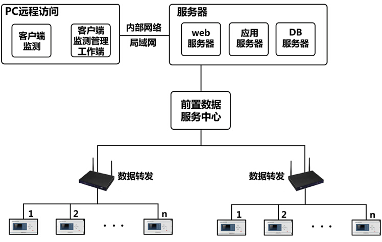采用面向?qū)ο蟮膯卧O(jiān)控模式,各個監(jiān)測單元與監(jiān)控中心組成監(jiān)測系統(tǒng),對于監(jiān)測數(shù)量可以按